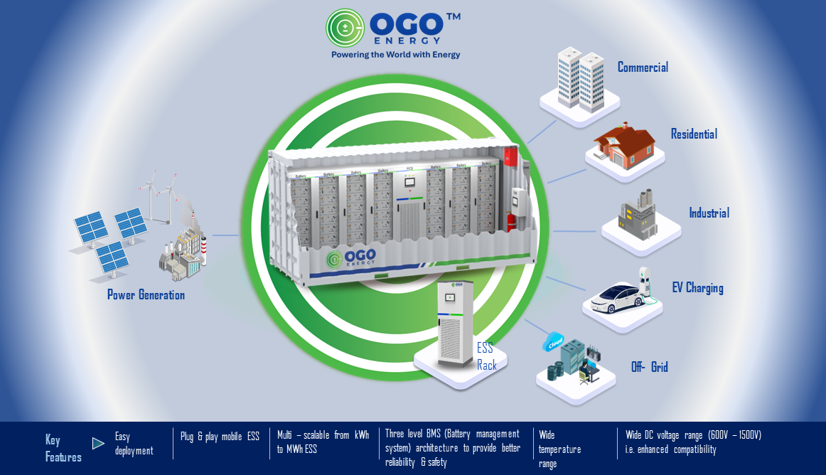 Backed by a team of experts with deep industry knowledge, OGO Energy’s BESS solutions are engineered to be reliable, robust, and scalable, catering to small, medium, and large-scale businesses, including utility-scale storage and off-grid backup applications.