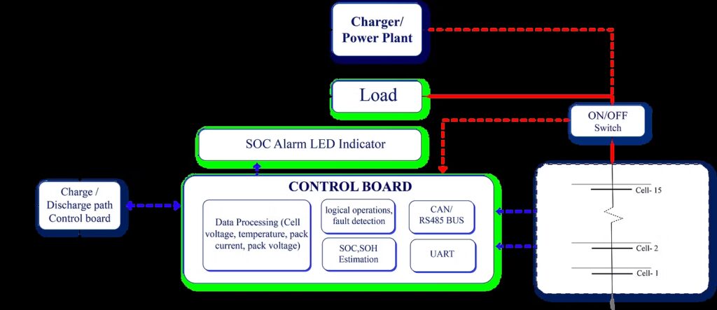 Battery Management System for the telecom module is truly capable to monitor the voltage, current and temperature of each individual cell inside a module.